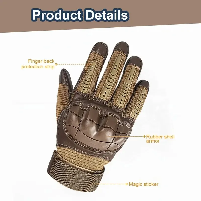 Premium Material - This Protective Tactical Full-Finger Gloves are made with high-quality microfiber construction and seated double thread, the reinforced PU layer improves the anti-slip performance while the dual layer synthetic leather palm provides an outstanding grip on hands.
